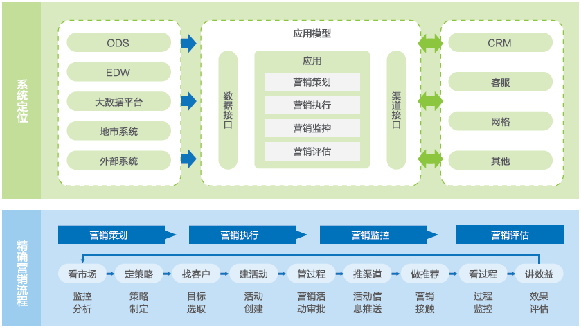 通過事前計(jì)劃、事中控制、事后分析評(píng)估完整的營(yíng)銷閉環(huán)管理流程實(shí)現(xiàn)對(duì)靜態(tài)營(yíng)銷和動(dòng)態(tài)營(yíng)銷能力的支撐,形成閉環(huán)流程,建立完善的營(yíng)銷活動(dòng)評(píng)估體系。