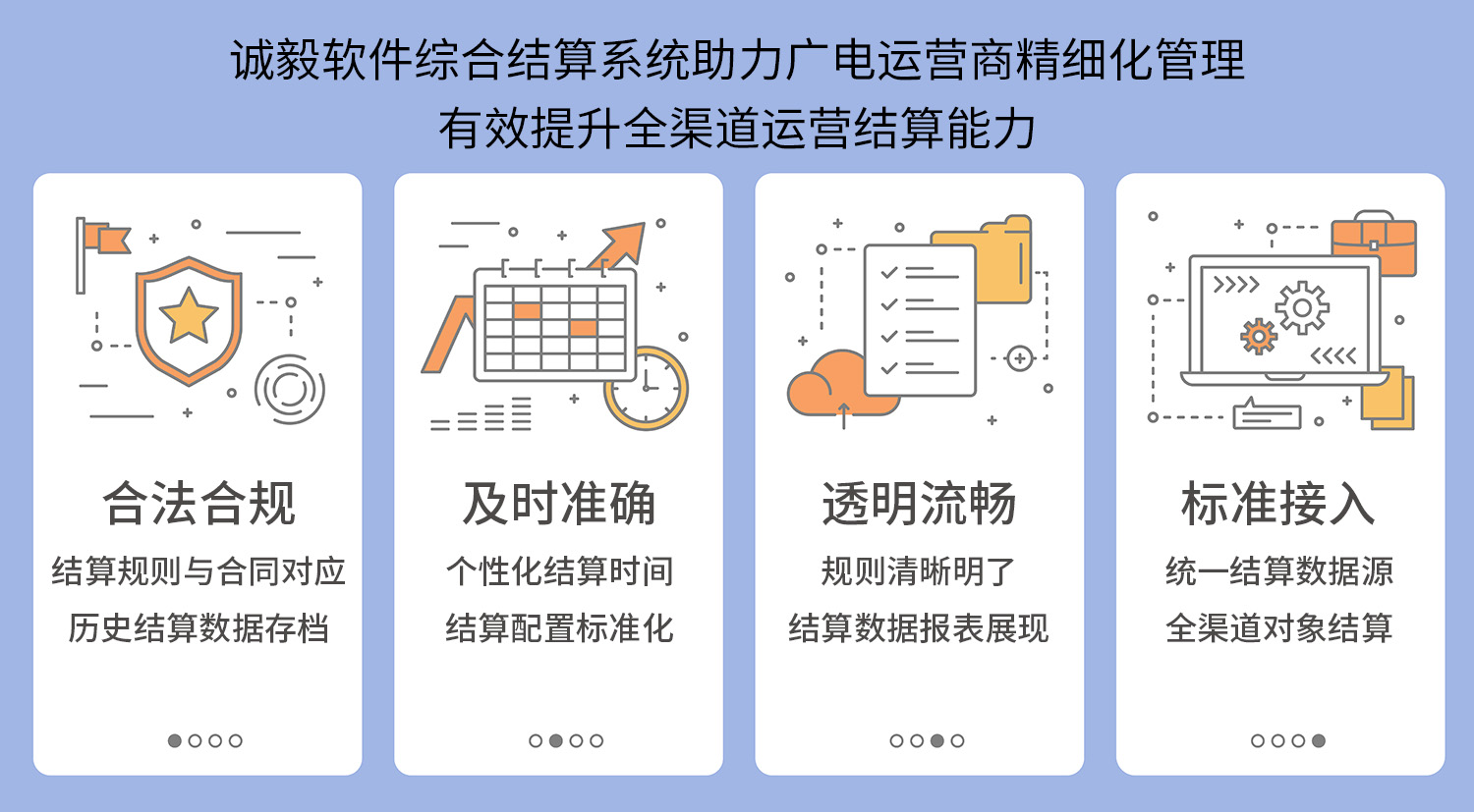 誠毅軟件新一代綜合結(jié)算系統(tǒng)以其多業(yè)務(wù)支持、智能內(nèi)控和稽核、解耦合設(shè)計等特點,為廣電運營商在5G時代實現(xiàn)固移融合業(yè)務(wù)和合作業(yè)務(wù)的精細(xì)化運營結(jié)算能力提供強(qiáng)有力的解決方案,助力運營商在快速變化的市場中保持競爭優(yōu)勢。