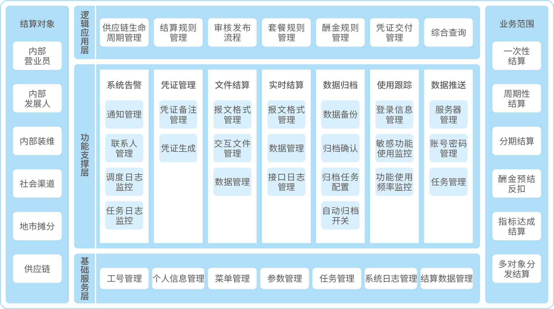 適應(yīng)多業(yè)務(wù)場景:支持內(nèi)部業(yè)務(wù)、第三方合作業(yè)務(wù)等多業(yè)務(wù)場景的結(jié)算,應(yīng)對5G時代合作伙伴關(guān)系的復(fù)雜性。