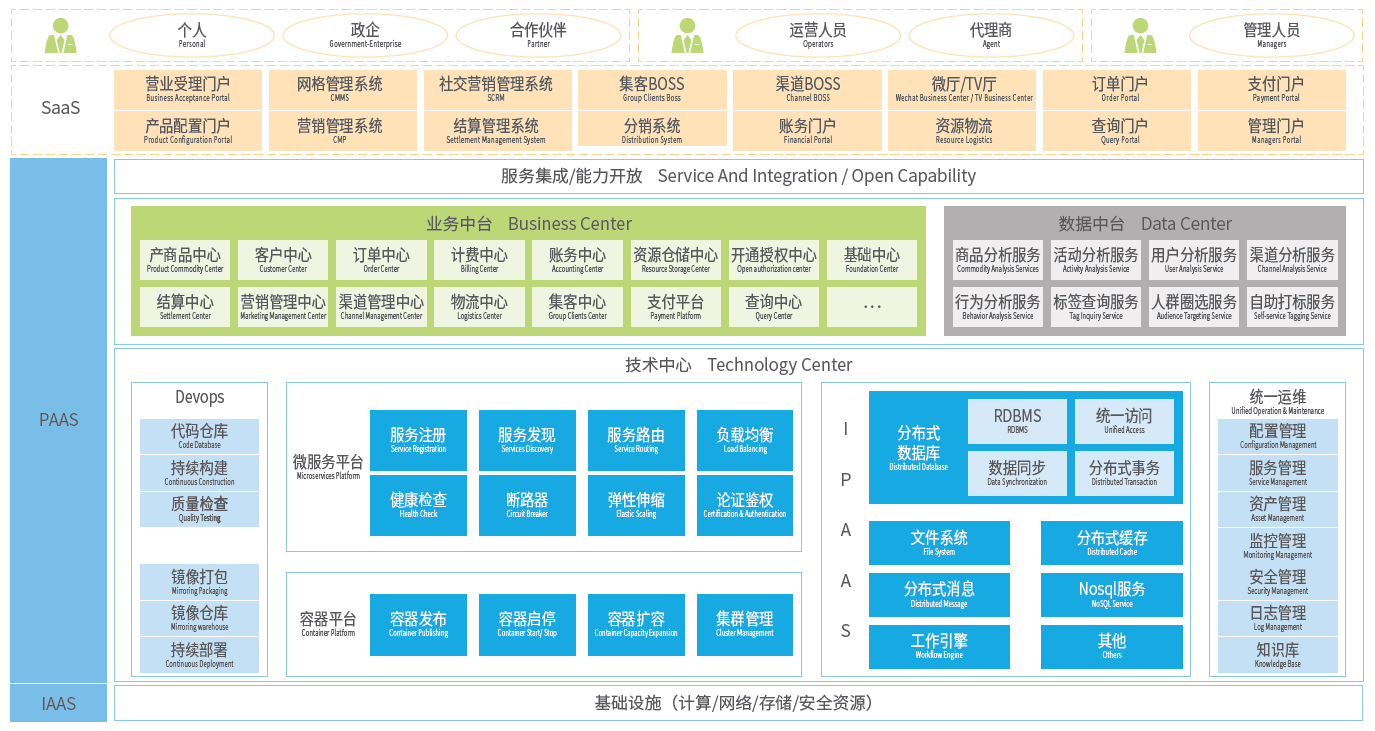 基于聚合、開(kāi)放的云化微服務(wù)、分布式架構(gòu),原云生設(shè)計(jì),組件化、容器化部署,實(shí)現(xiàn)數(shù)據(jù)平臺(tái)化、能力中心化、業(yè)務(wù)服務(wù)化,開(kāi)放的BOSS服務(wù)能力,安全高可用,提升運(yùn)維效率。