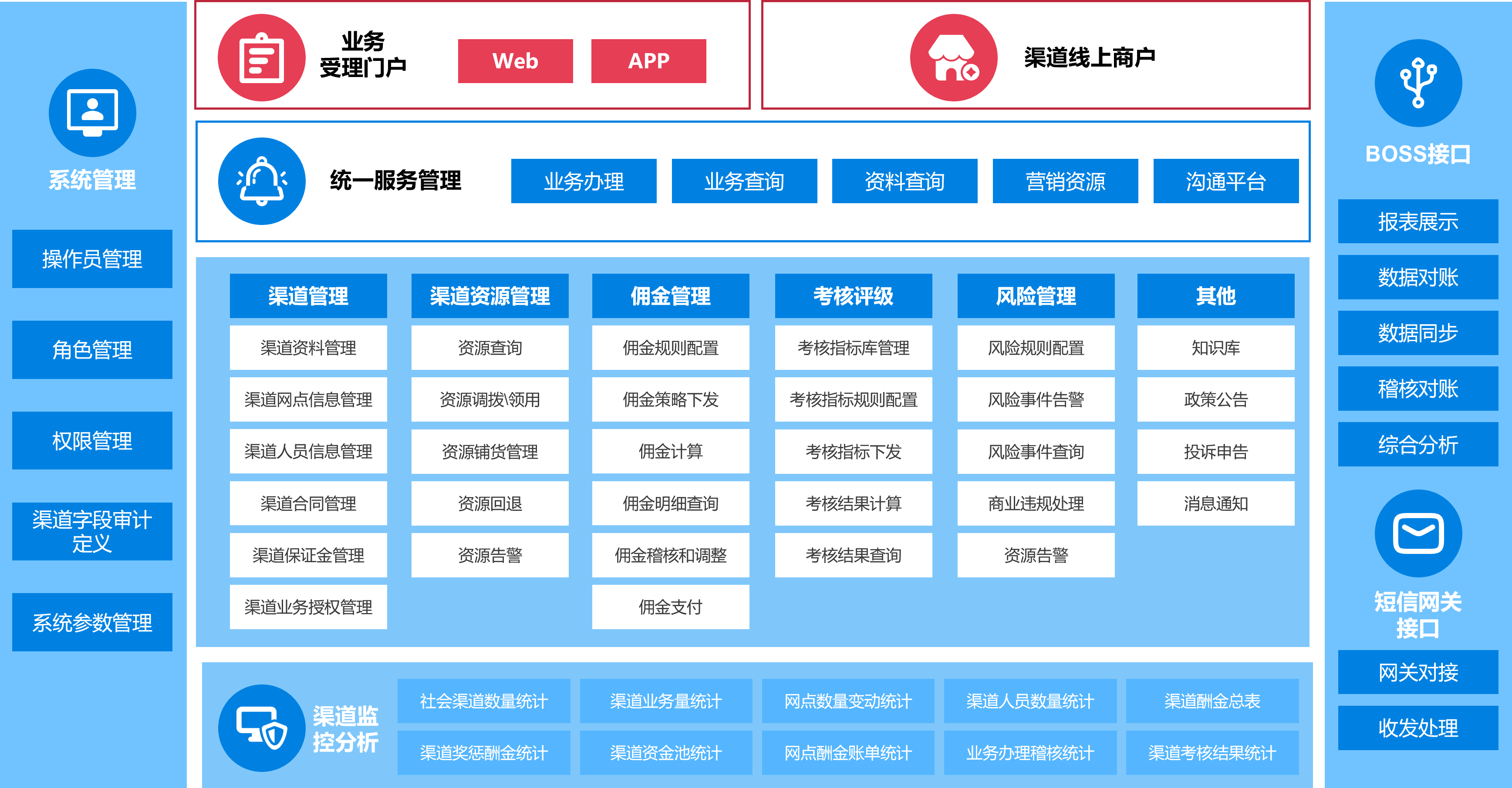 搭建統(tǒng)一的渠道管理平臺(tái),覆蓋全省各地代理商和渠道,實(shí)現(xiàn)信息集中存儲(chǔ)與管理??勺粉櫱腊l(fā)展?fàn)顩r、業(yè)務(wù)受理情況,為決策提供準(zhǔn)確數(shù)據(jù)支持。