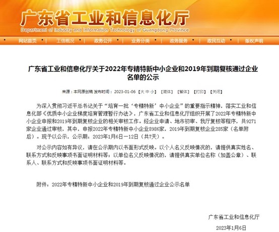 近日,廣東省工業(yè)和信息化廳公示2022年度專精特新中小企業(yè)名單,誠(chéng)毅軟件經(jīng)過地市初審、省廳復(fù)核等程序,成功入選2022年度廣東省專精特新中小企業(yè)。